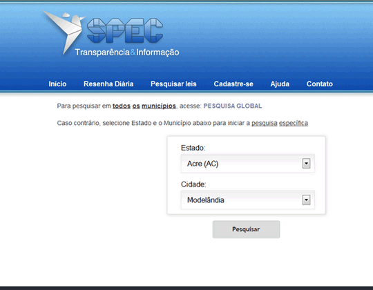 Para realizar essa modalidade de pesquisa, selecione o Estado e o Município desejado na página de pesquisa e clique em pesquisar.