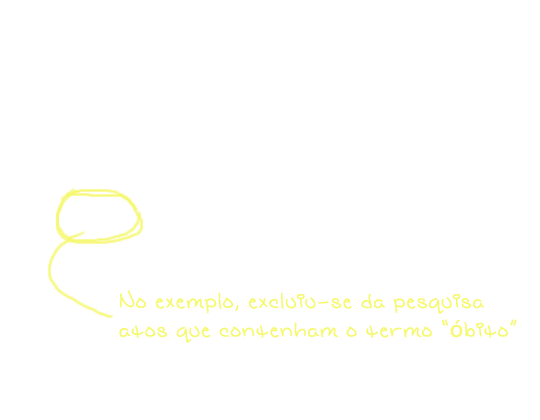 - - (menos): Exclui o termo da lista de resultados. Pode ser um município, uma data, entre outras inúmeras possibilidades.